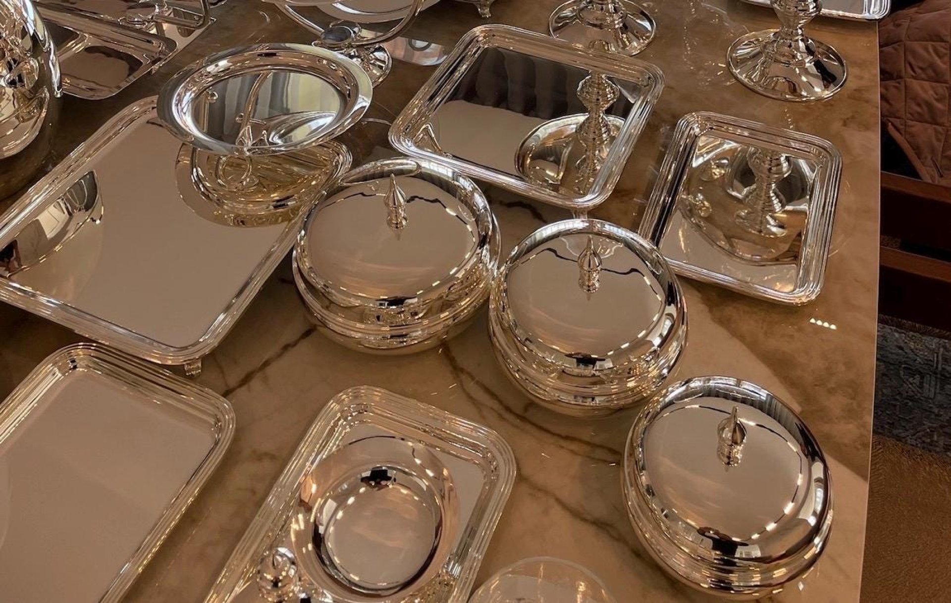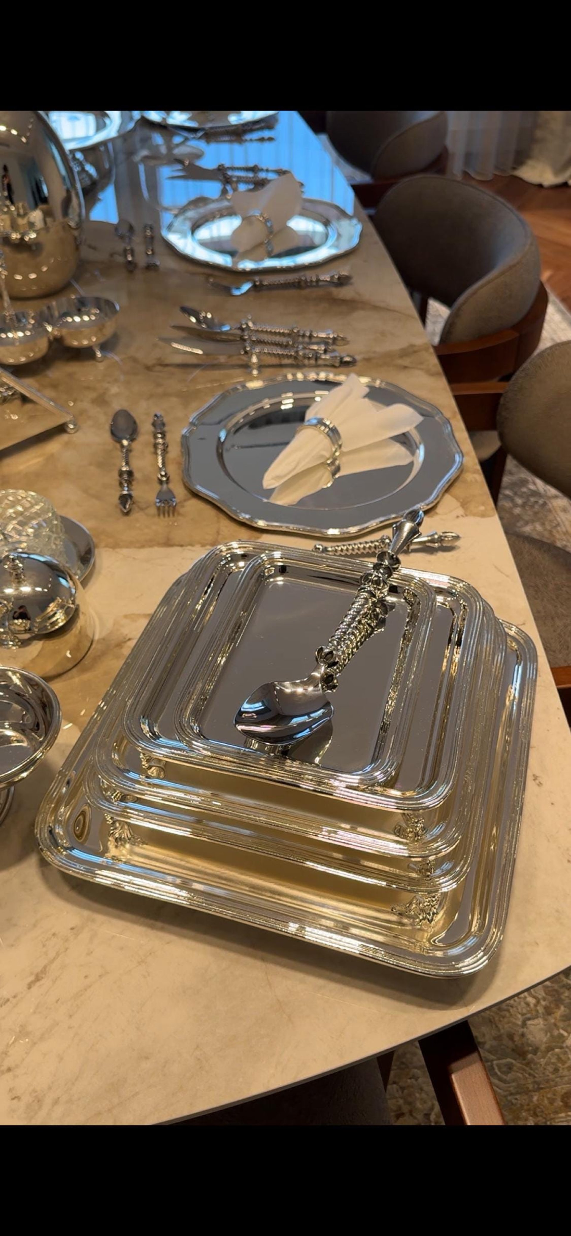 This exclusive serving collection brings together 23 different handmade brass product groups, offering a complete luxury tableware experience in one modular system. Each piece is carefully crafted and polished by hand, designed to be purchased individually or as part of the full 80 piece set. Whether you are building your collection step by step or choosing the complete bundle, this series allows you to create elegant and consistent table settings for both daily use and special occasions.