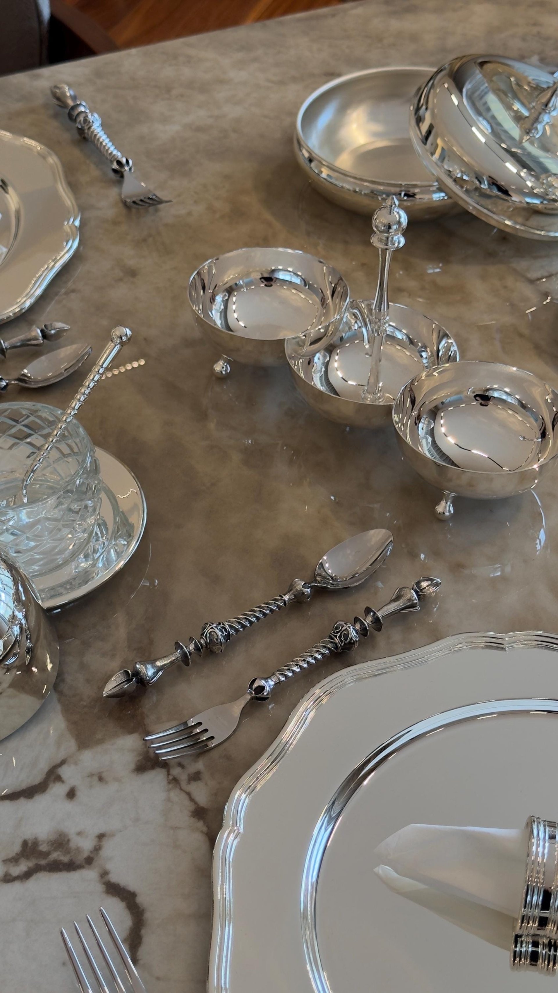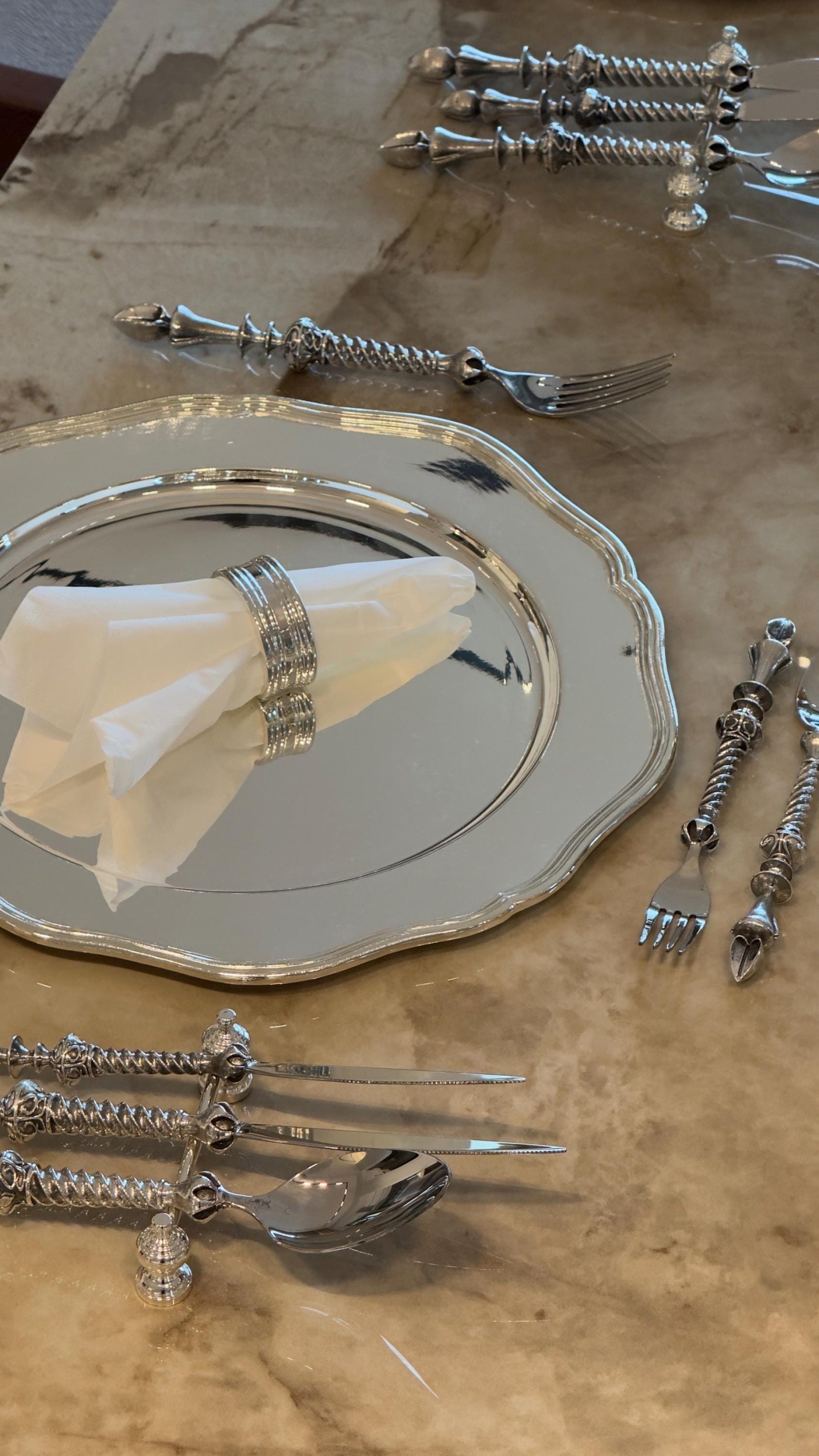 Each piece is carefully produced by master artisans in Türkiye using traditional techniques. This collection is designed for luxury dining tables, weddings, formal events, fine dining settings, and elegant home décor.