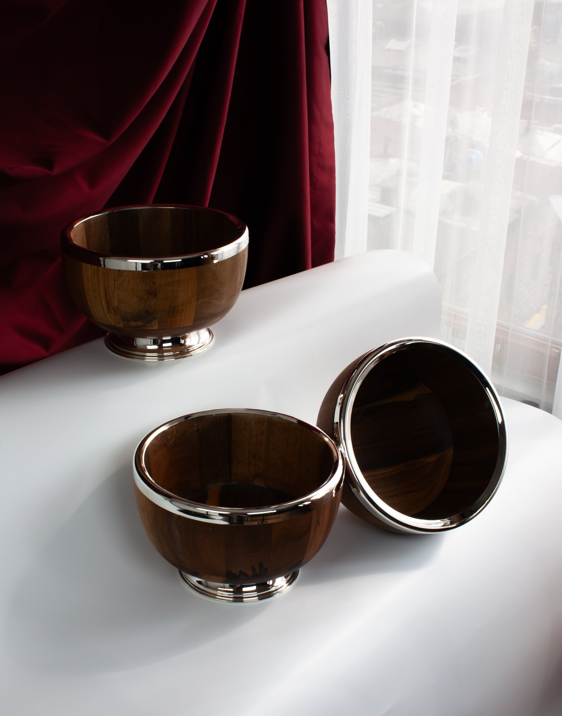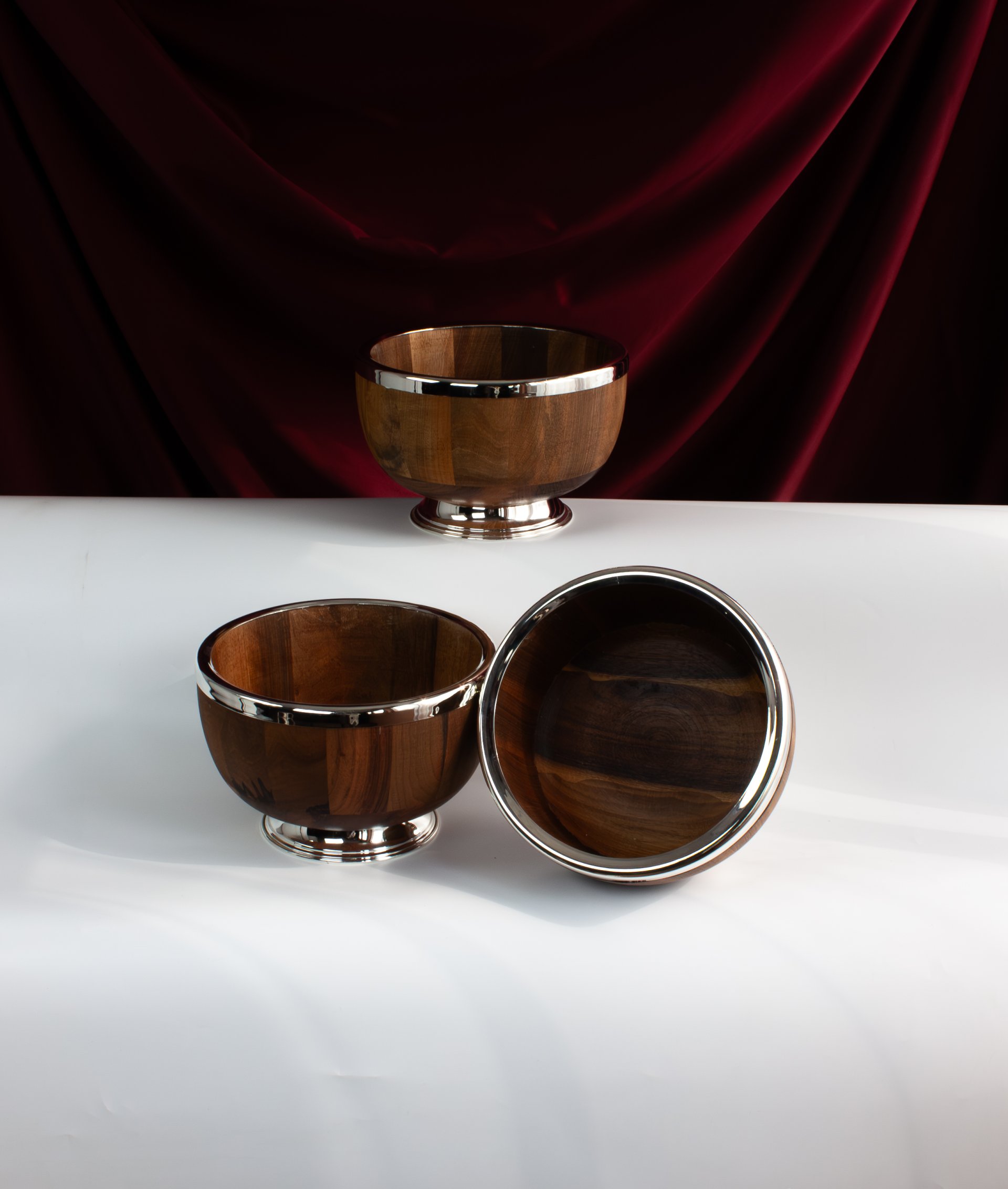 The combination of materials makes this bowl both decorative and functional, offering a modern interpretation of classic craftsmanship. Its rounded form and elevated base create a balanced silhouette that enhances any table setting.