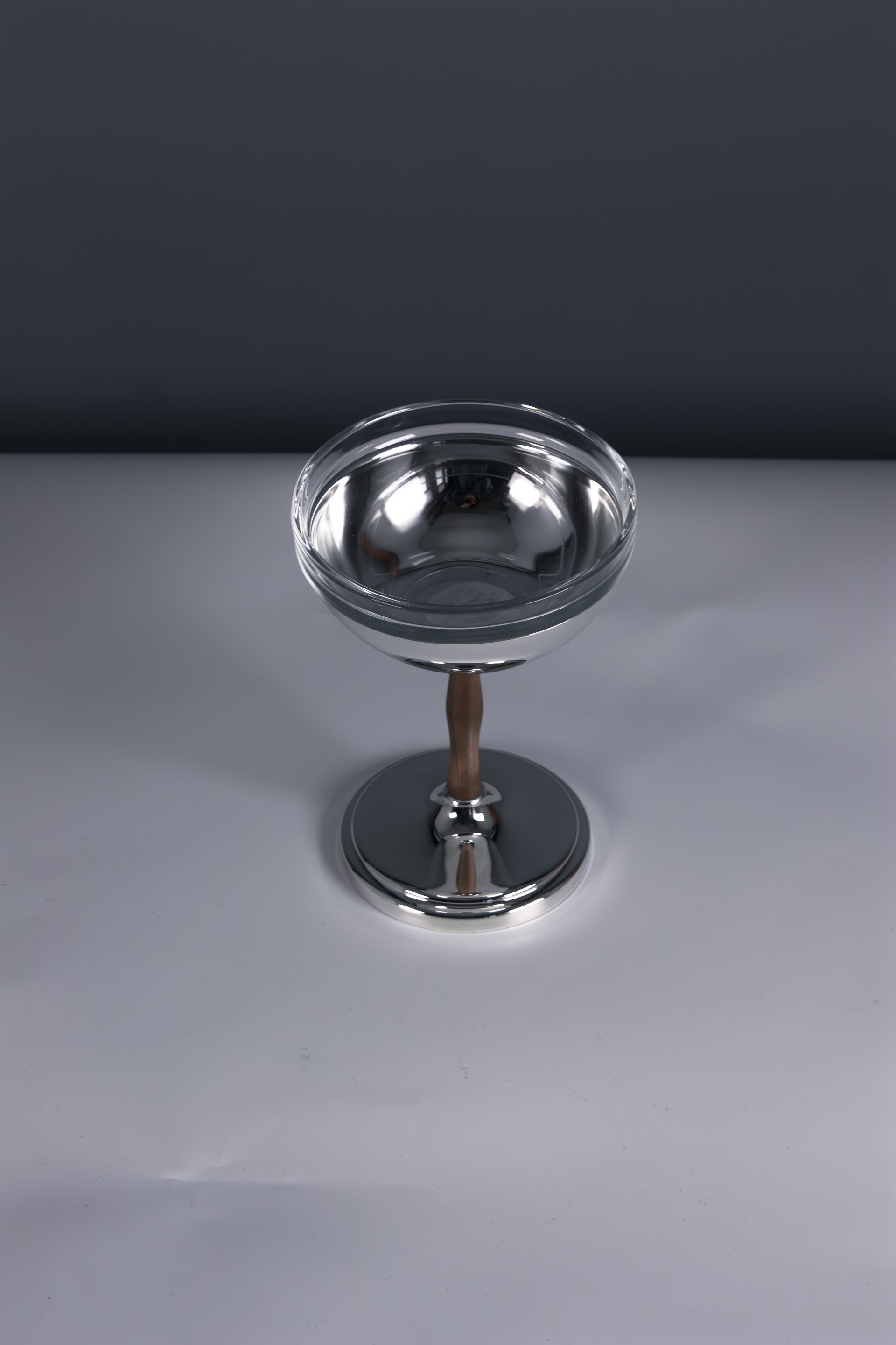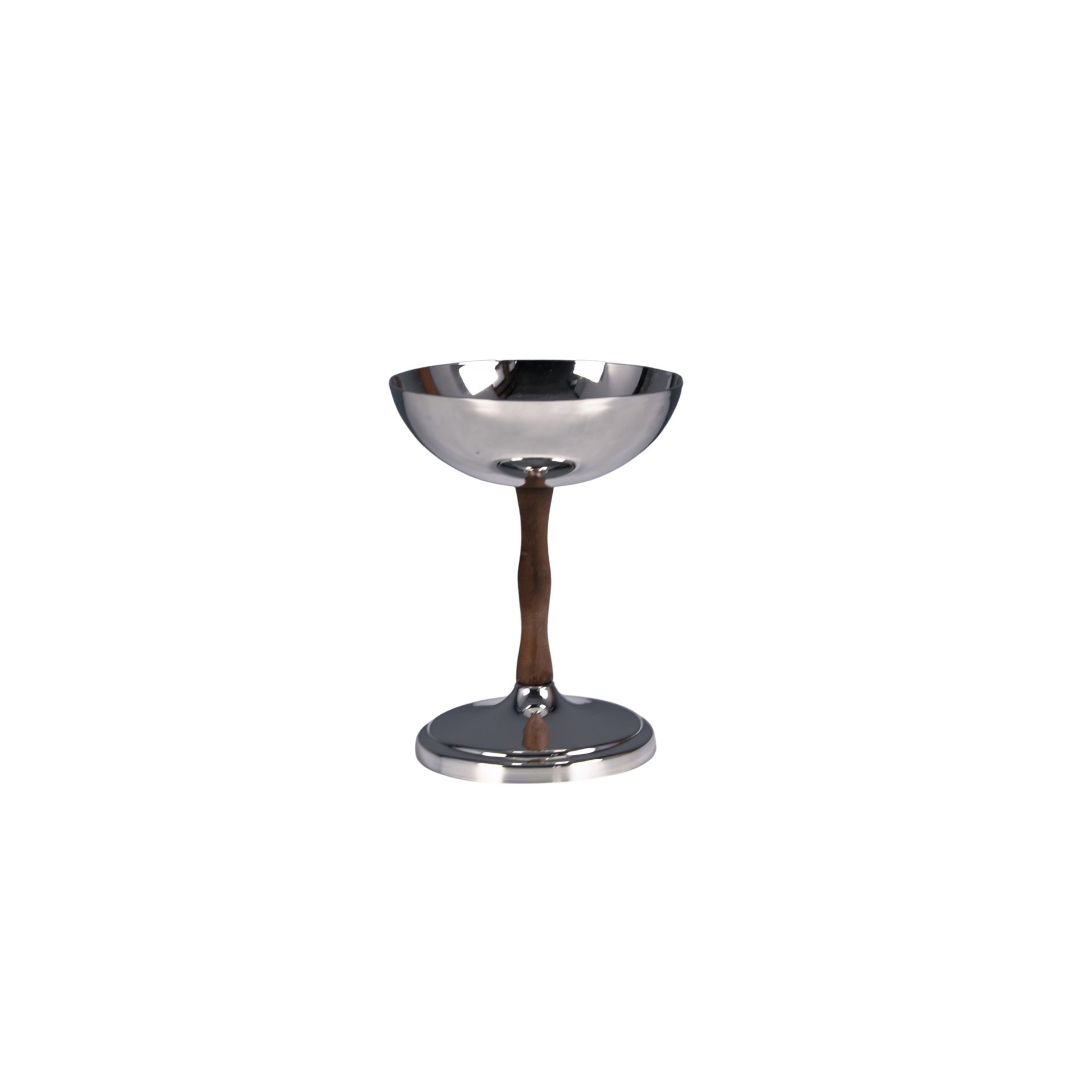 The elevated design gives the piece a sophisticated silhouette while making it perfect for serving desserts in an elegant way. The wooden stem adds warmth and character to the design, while the brass bowl provides a smooth and durable surface ideal for serving a variety of treats.