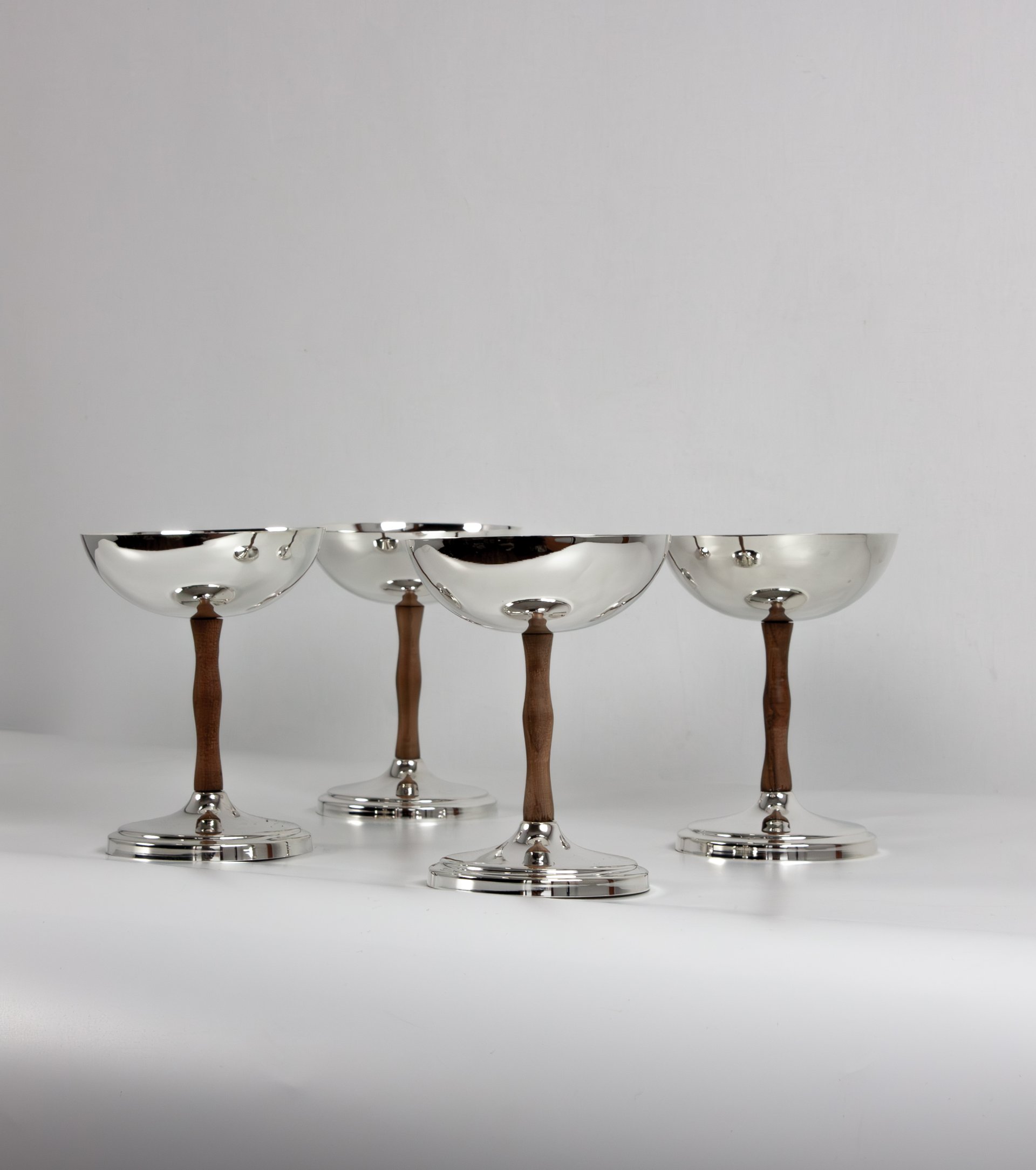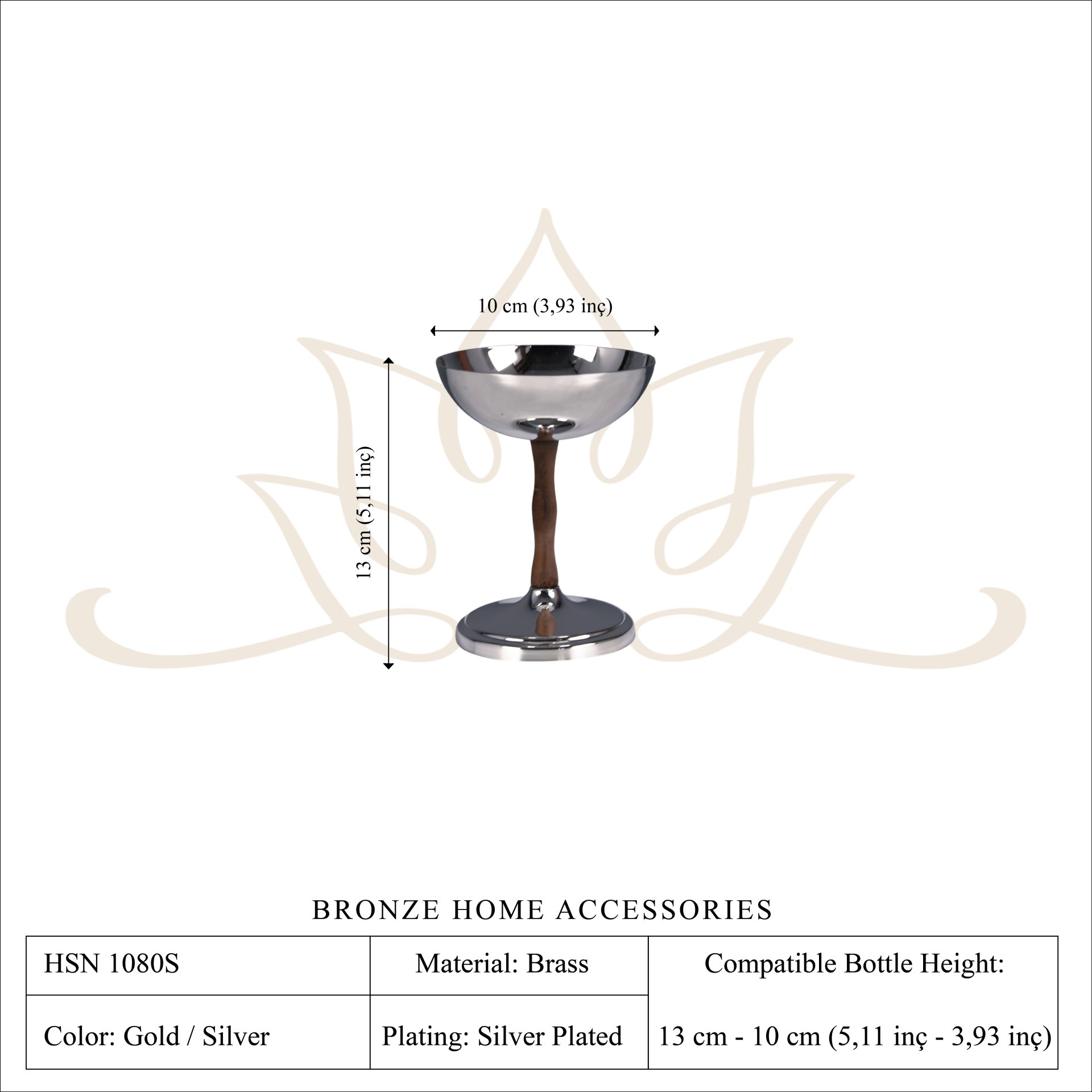 This elegant dessert bowl set is handcrafted from solid brass and designed to elevate the presentation of sweet treats. The bowl features a polished brass cup paired with a beautifully shaped wooden stem, creating a refined contrast between natural wood and reflective metal.