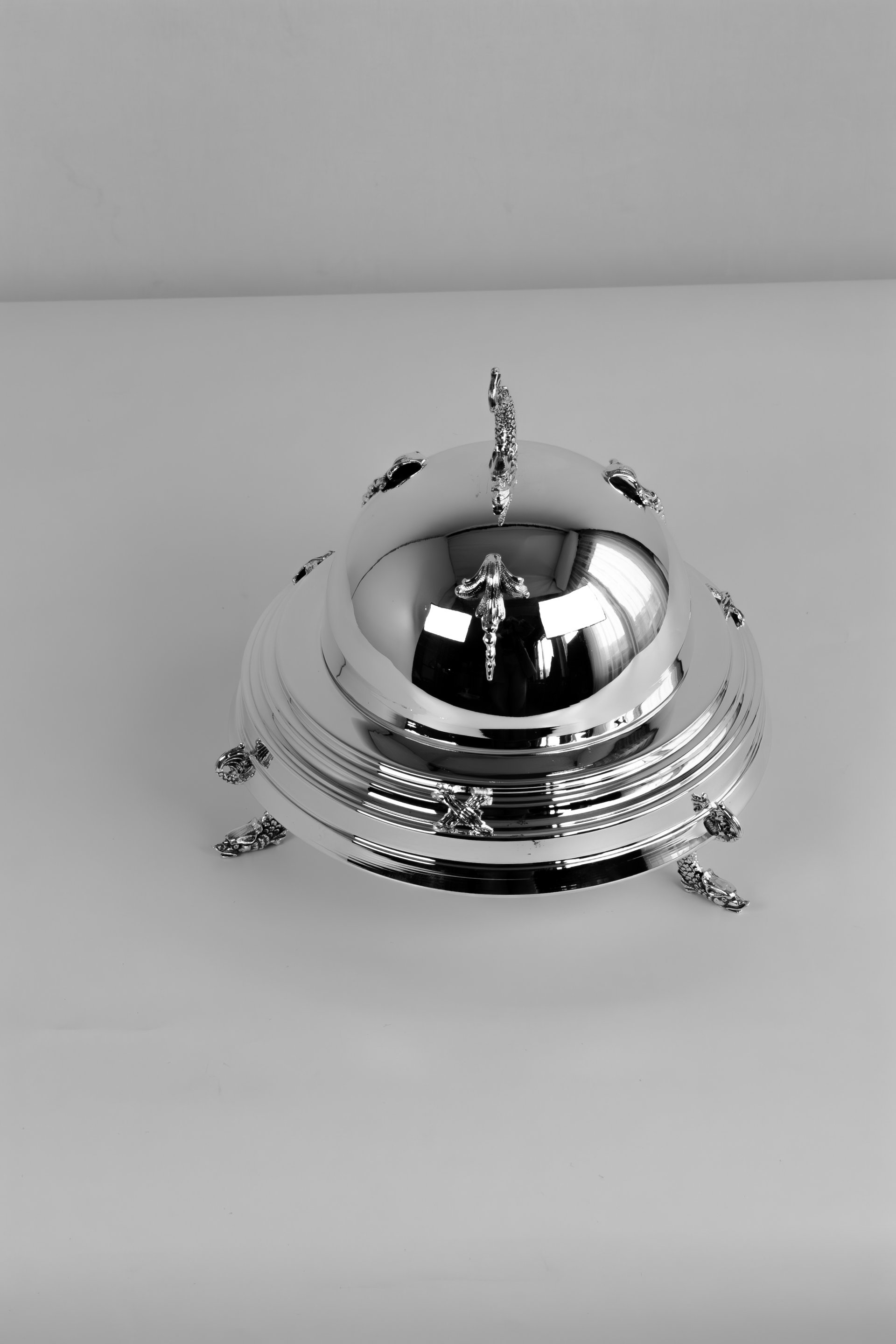 This elegant caviar server is designed to elevate your dining experience with its sculptural and refined form. The domed lid preserves freshness while adding a ceremonial touch to serving. Its compact yet striking silhouette creates a strong visual presence, making it ideal for sophisticated table settings.