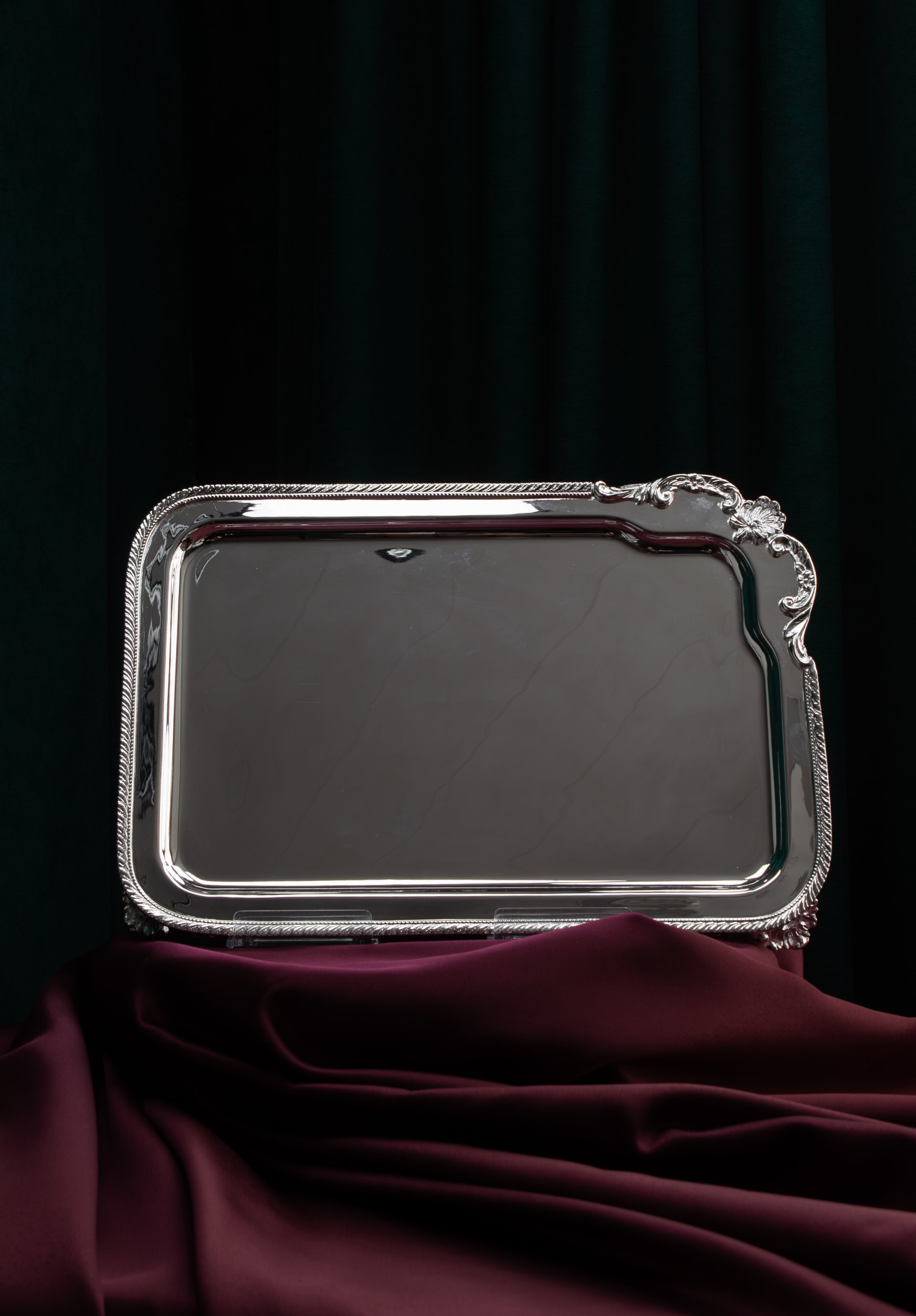 Each piece is individually handmade, resulting in slight variations that highlight authentic craftsmanship and make every tray unique. The polished metal surface reflects light beautifully, adding a luxurious touch to dining tables, buffet setups and decorative arrangements.