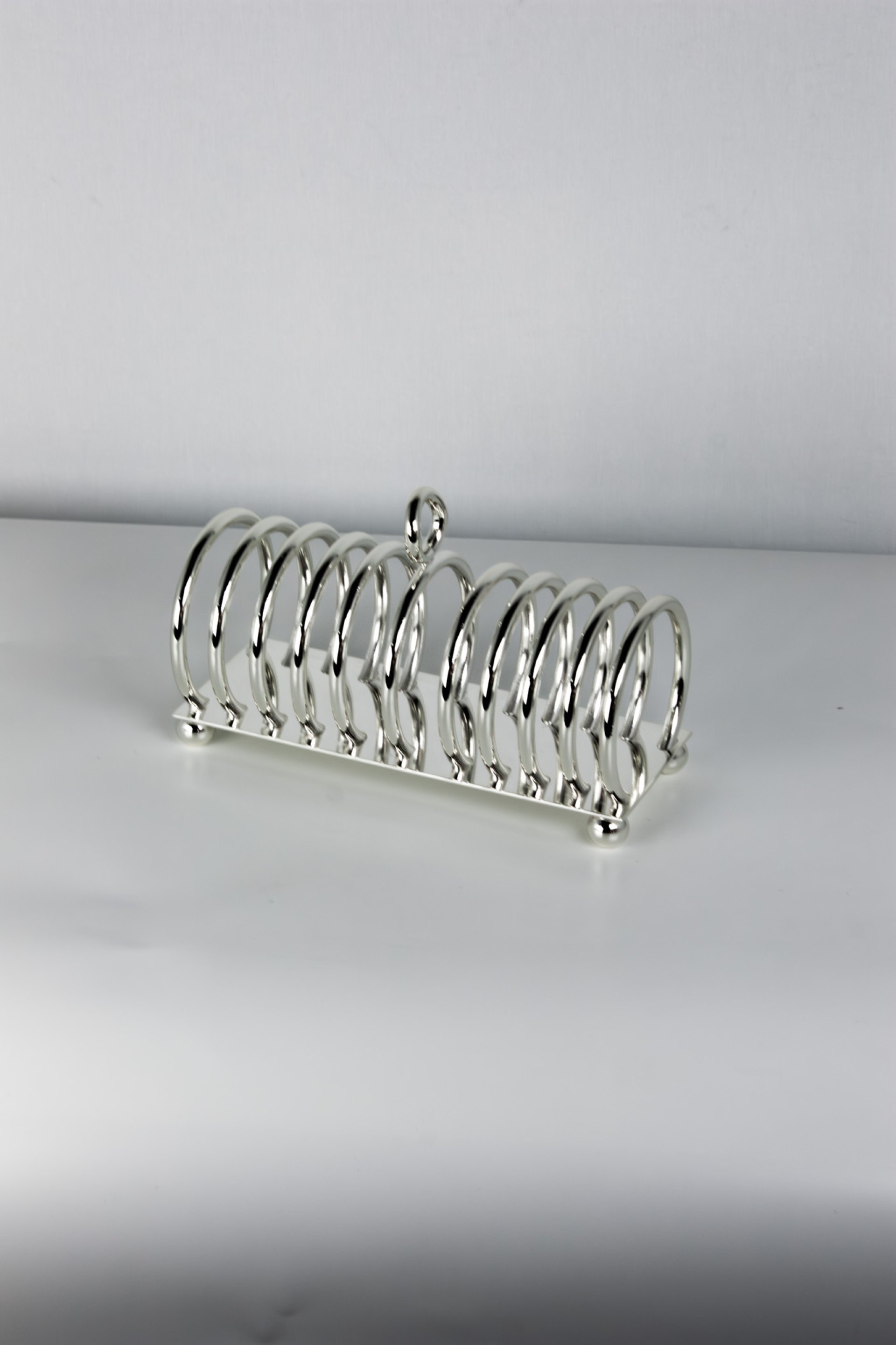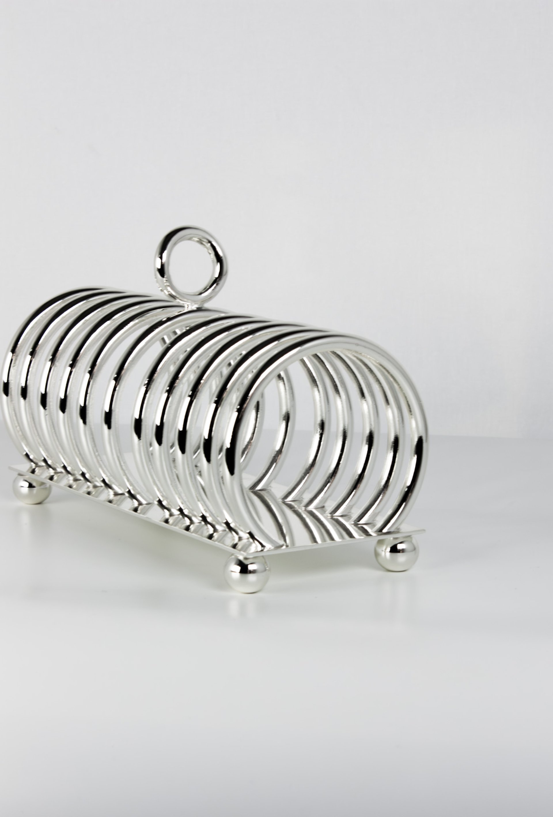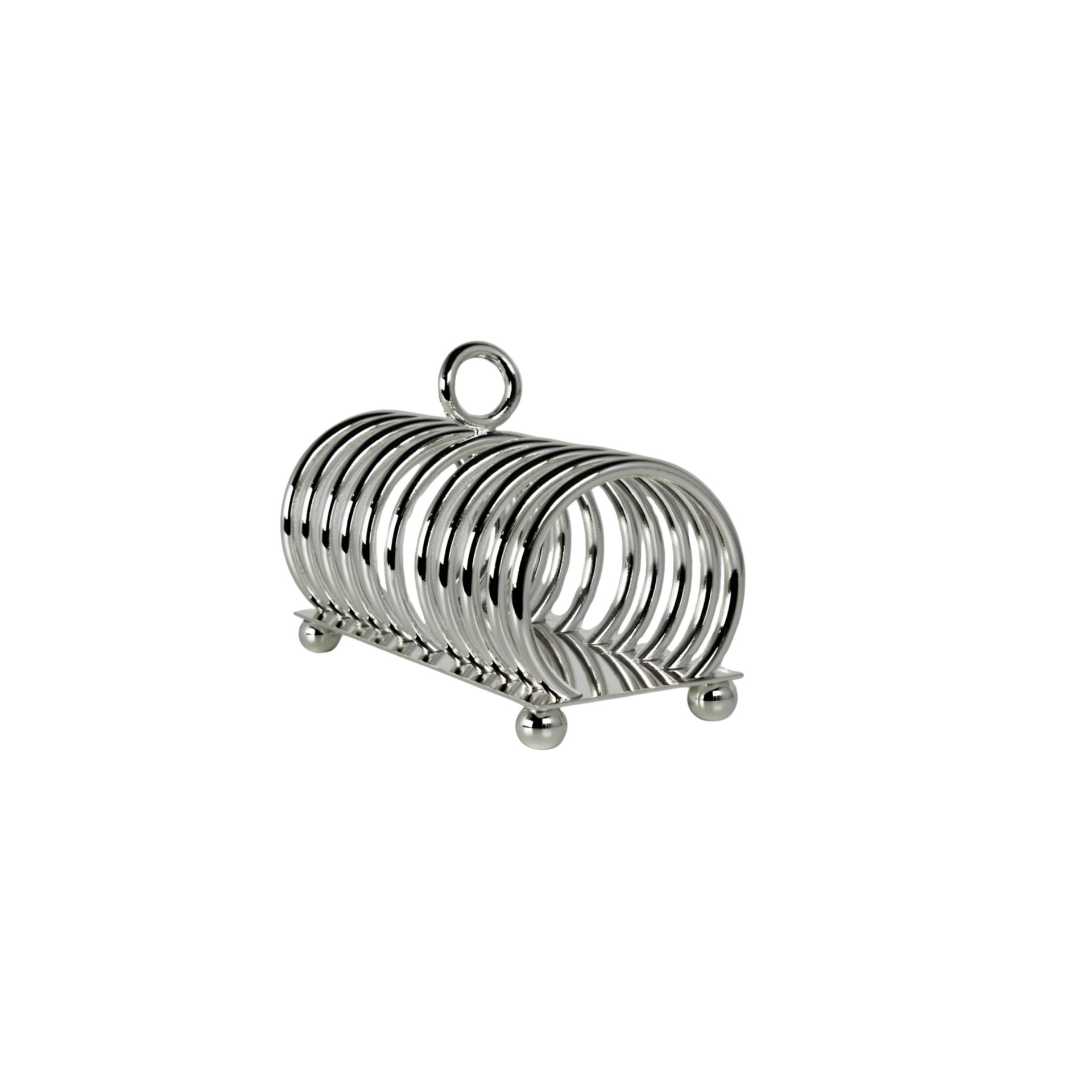 The curved ring design allows proper air circulation around bread and baked goods, helping them stay fresh while also presenting them beautifully on the table. The polished metallic surface reflects light softly and enhances the visual presentation of breads, pastries and breakfast items.