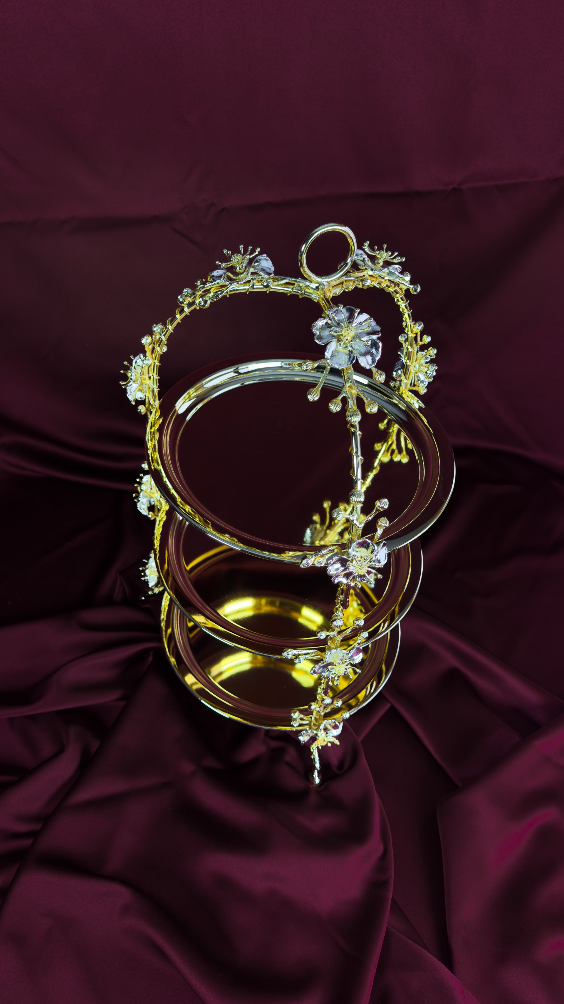 This three tier stand is ideal for luxury home entertaining, dessert tables, tea time presentations, weddings, brunch settings, and festive gatherings. Whether used for serving pastries or as a decorative display piece, it brings timeless elegance to any table under the Bronze Home Accessories collection.