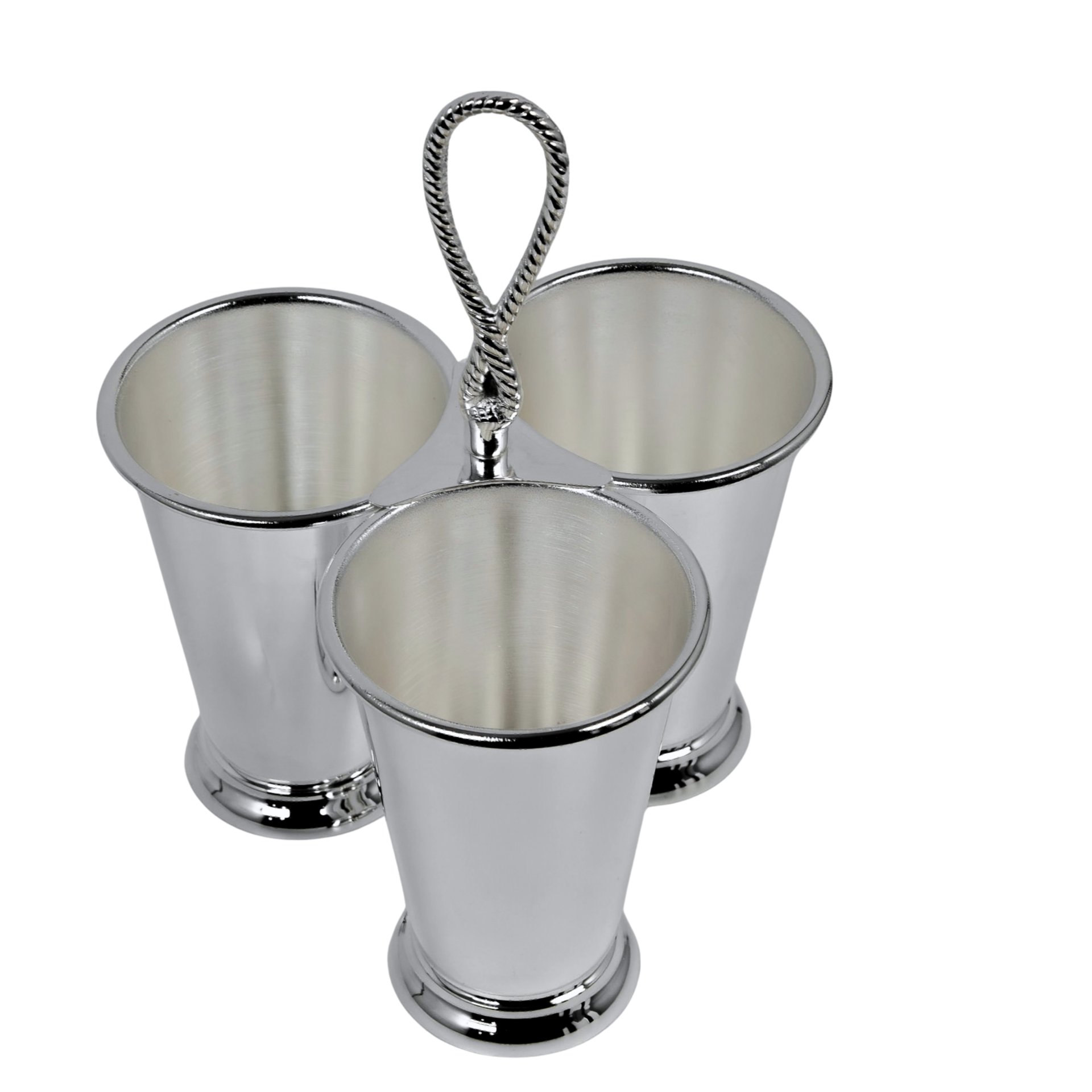 This handmade brass triple cutlery holder is designed to combine functionality with refined table presentation. Crafted by skilled artisans, the piece features three elegant cylindrical containers arranged around a decorative central handle that allows easy carrying and stylish display.