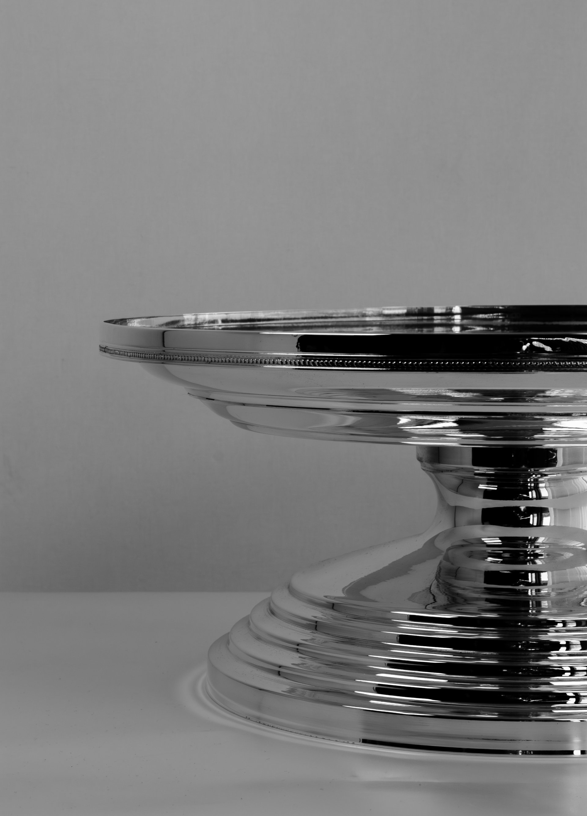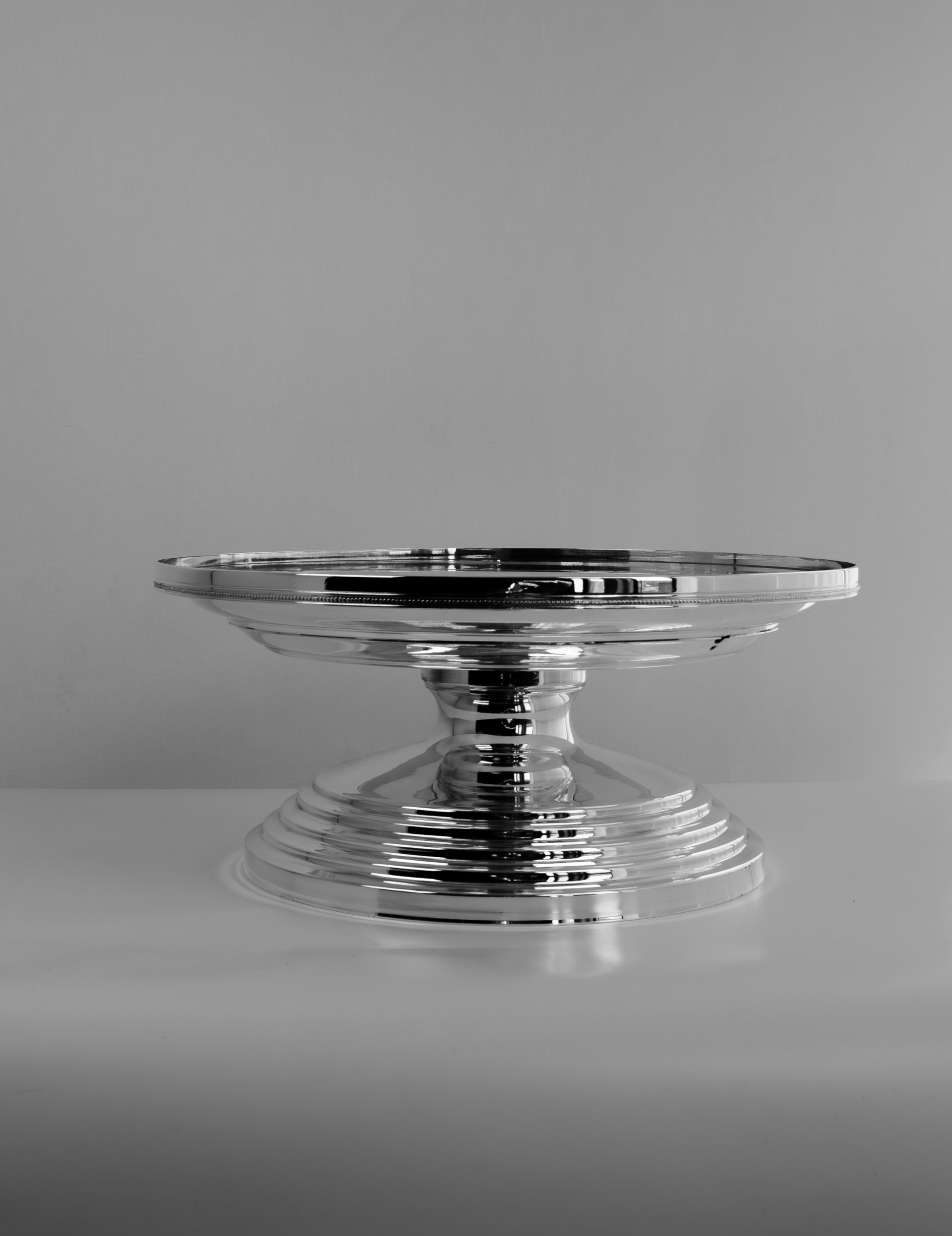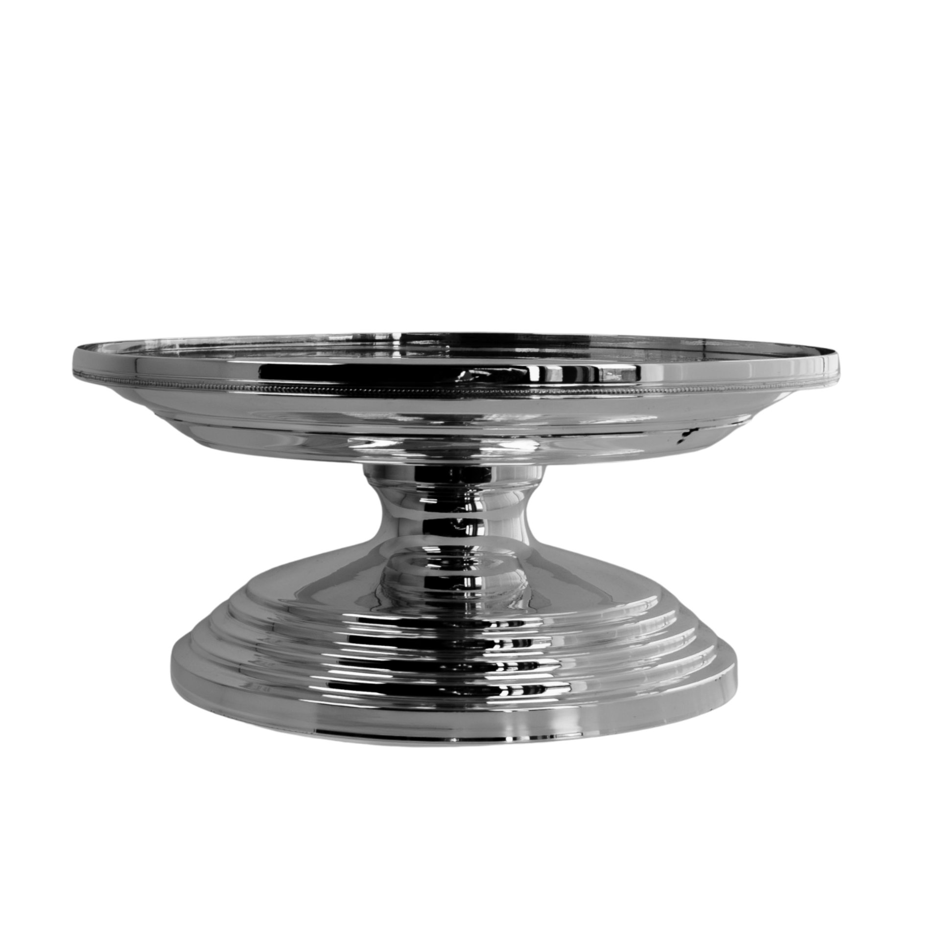 This elegant cake stand is designed to create a strong visual presence on any table. Its wide surface and elevated pedestal form provide a balanced and refined display, making it ideal for showcasing cakes at weddings and special occasions. The clean silhouette enhances presentation while maintaining a timeless aesthetic.