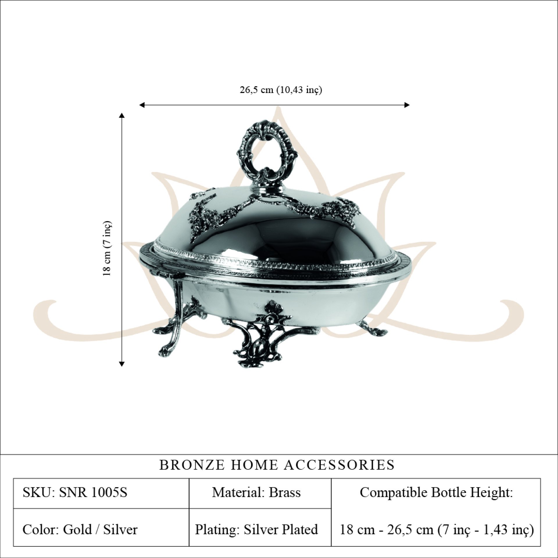 Silver plated finish suitable for both traditional and contemporary serving environments.