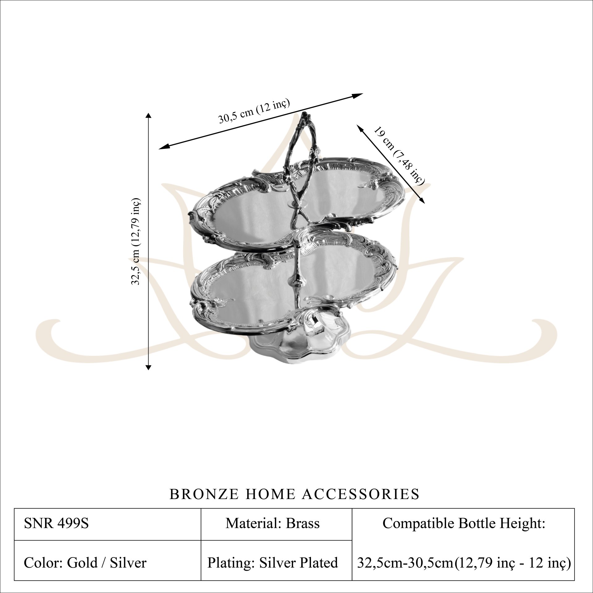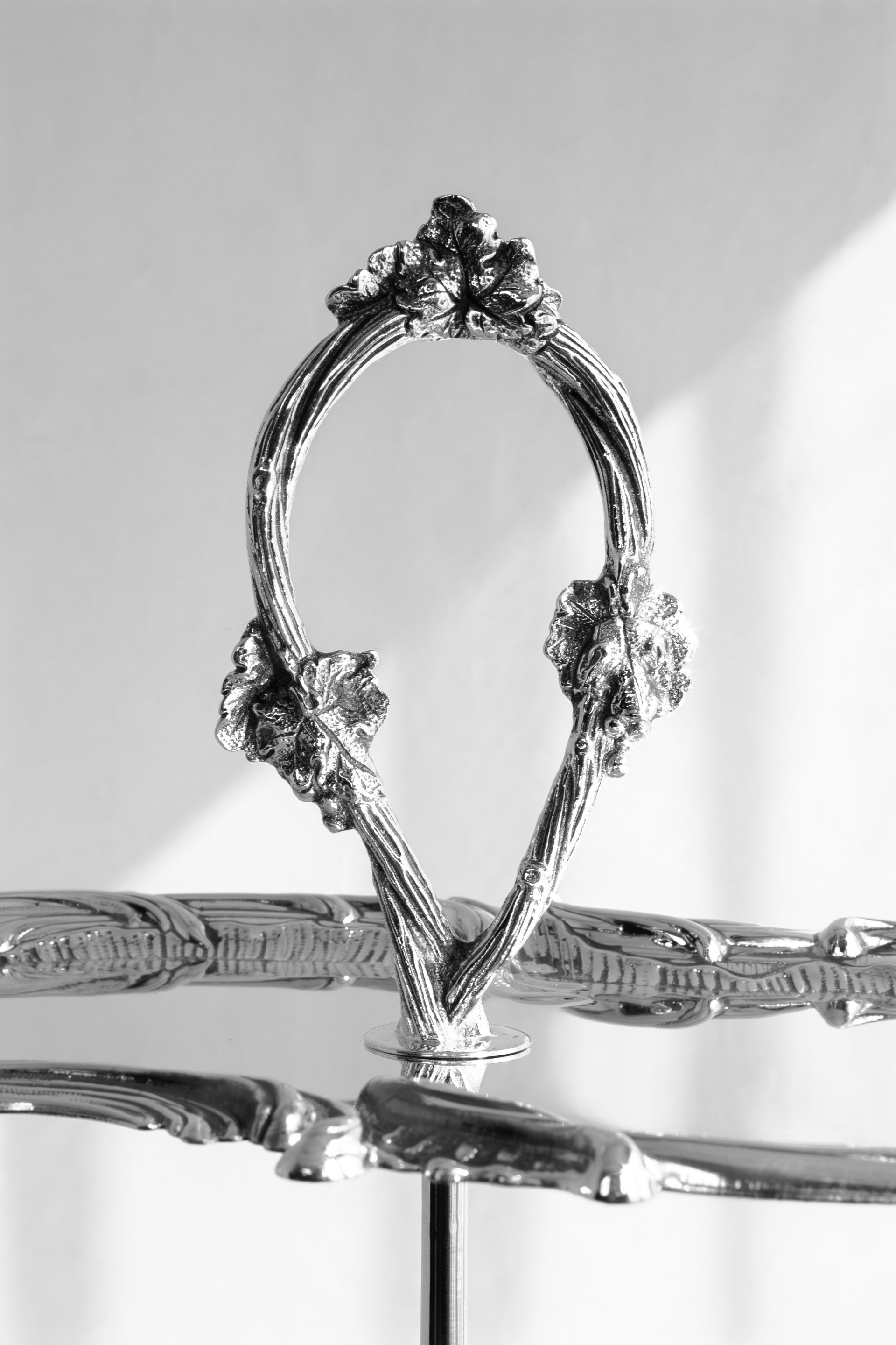 The ornate edges and polished brass finish reflect classic craftsmanship while adding a luxurious character to the piece. Its vertical design allows multiple servings to be presented beautifully without occupying excessive table space, making it both practical and decorative.